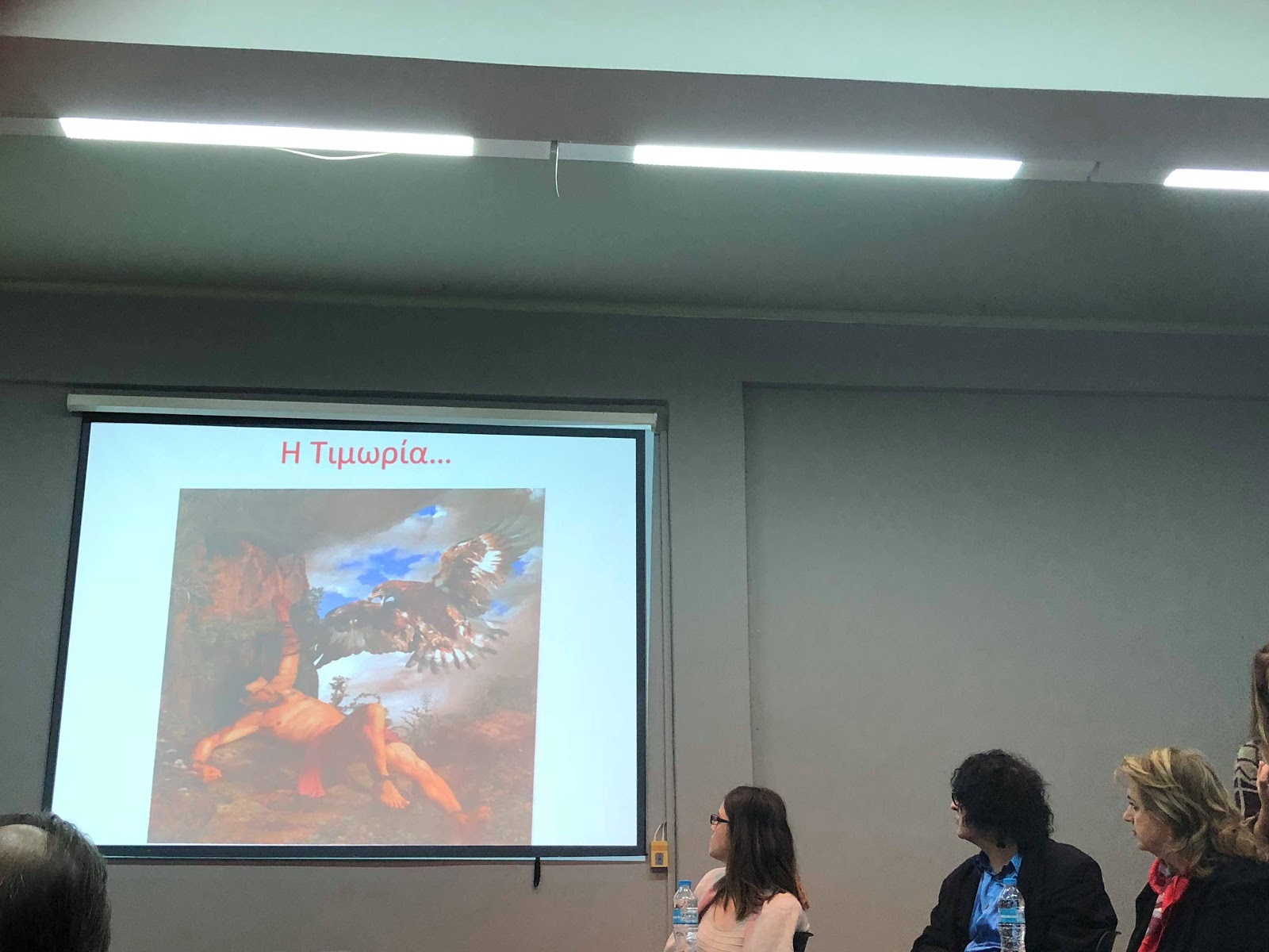 Η φιλόλογος Πετρογιάννη Ελευθερία έκαμε εκτεταµένη και πολύ εµπεριστατωµένη εισήγηση με θέμα, «Αναφορά στον Προμηθέα Δεσμώτη του Αισχύλου».
